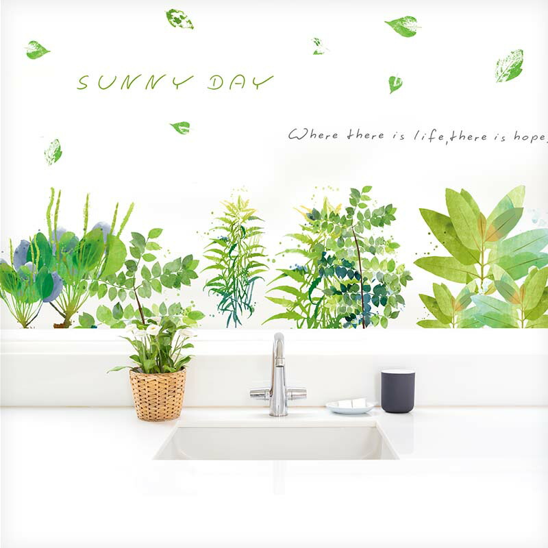 ウォールステッカー 【サニーデー】 はがせる 壁 シール ステッカー 壁紙 飾りつけ おしゃれ 北欧 植物 木 葉 草 花 観葉植物 足元 廊下トイレ