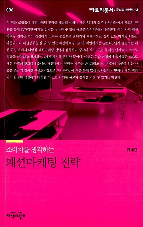 「アロリ叢書」は、韓国放送通信大学で生涯教育時代に合わせて、世界の変化を解析して、方向を提示するために企画したシリーズだ。この本は、「アロリ叢書」の第6本で、常にファッションマーケティング戦略を開発しなければならファッション業界の実務担当者に事故の転換を通じて、効果的なマーケティング戦略を構想することができる新しいアイデアを提供する。