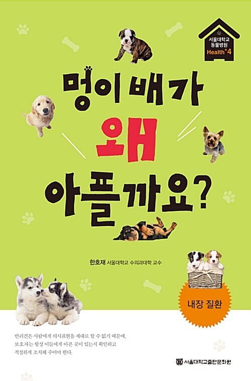 ソウル大学の動物病院Health +シリーズ第四巻。伴侶犬の内臓器官で頻繁に発生する病気の原因と症状は、これを治療する方法を簡単に調べてみる。伴侶犬は生きていきながら、さまざまな病気にかかるようになるが、その症状と原因に応じて、消化器疾患、呼吸器疾患、循環器疾患、泌尿器疾患、内分泌疾患、感染性疾患などで区別することができる。