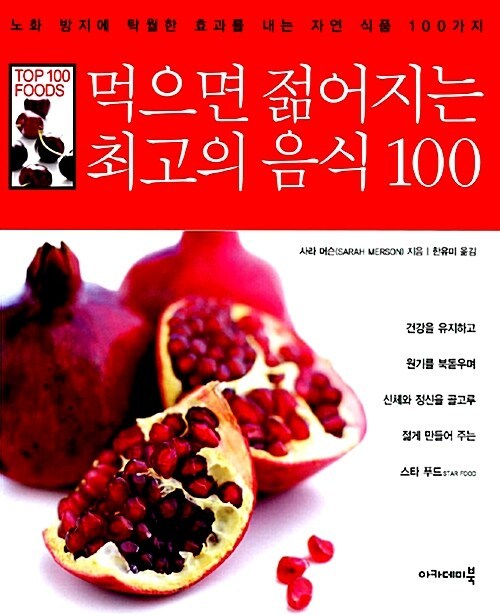 免疫力を強化し、各種の感染症疾患に対する耐性を育て、結果的に老化を遅らせるために役立つ100の代表食品フルーツ類、野菜類、ナッツ、シアトリュ、号泣類、肉類、魚類、アリューシャン、乳製品、ハーブ類、スパイスで分け、それぞれの食品が持つ効能や栄養的特性を説明する。