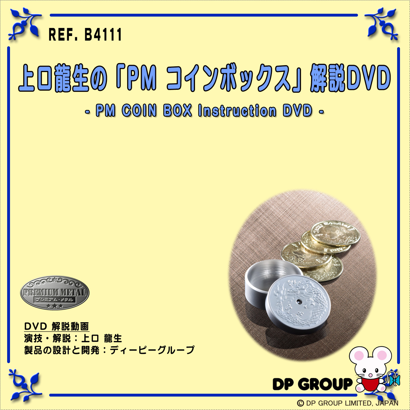 【注意:本製品のみでの使用はできません。別途、「PM コインボックス」(M7111/M7113)の製品が必要です。】本製品は「PM コインボックス」の解説映像です。「PM コインボックス」には、詳細な説明書が入っています。それでも、やはり、映像で実際の模範演技、演じ方、コツを会得するのが、よりわかりやすい方法です(名手、上口龍生師のレクチャー形式のDVDです)。「コインボックス」は、ボックスに入れたコインが、ボックスの底から手の平や、トランプ等を貫通してしまう!お客様の目の前で演じることのできるクロースアップマジックの名作です。そこで「PM コインボックス」を使って、基本テクニックからトランプを使った方法、4枚のコインを使った手順等を詳しく解説しています。さらに、この演技に必要な、フィンガーパーム・フレンチドロップ・ラッピングといった技法や、説明書には無い、ボックスのやさしいターンオーバーの方法や、世界的に有名なコインマジシャンDavid Roth師の手順をやさしくアレンジした上口龍生師の方法も演技・解説しています。
