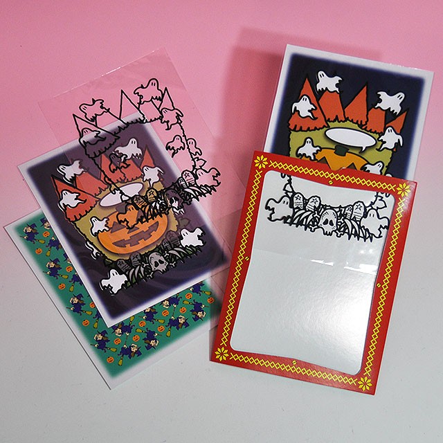 今や日本でも一大イベントになったハロウィンでのショーにぴったりのマジックです。マジシャンは、「トリック・オア・トリート(Trick or treat. ご馳走をくれないと悪戯するよ)!さあハロウィンパーティーを始めましょう。今日はあなた(あなた達)の為にお化けカボチャからのメッセージがあります。」と言って、赤いフレーム(265×205mm)に入った、たくさんのお化けが飛び交っているモノクロのお化け屋敷の輪郭が描かれたカードを見せます。そして、「おや、お化けはいっぱいいるけれどカボチャはいませんね。それに、何となく寂しいですね。」「それではハロウィンの魔法の力をお見せしましょう。」と言いながらカードをフレームから抜き出すと、フレームから出てきた部分に色が付いてカラフルなカラーになっていき、お化けカボチャ(Jack-o'-lantern)が出現します。しかも、そこにはお化けカボチャからのメッセージまで付いて!!(メッセージ部分はお好きな内容が書き込めます)(カード2組付)<「予備カード」(C2949A)は、ギミック、カード各3枚セットです。合わせてご注文ください>