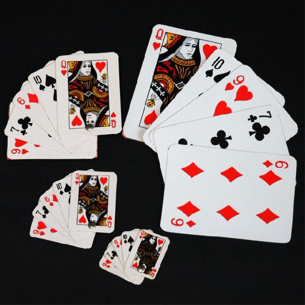 普通サイズのトランプ(ポーカーサイズ)をよく見せてから魔法をかけると、トランプはお客様の目の前で半分の大きさに縮んでしまいます。そして、魔法をかけるたびにトランプはどんどん小さくなっていき、とうとう最後には消えてしまいます。ギミックを使用したトランプのトリックとしては古典的な用具でトランプが段々小さくなっていく過程と、元のサイズのトランプとの対比が不思議さの中にユーモラスな雰囲気を漂わせ、最後は思わず身を乗り出してしまいます。この何とも言えない余韻を残した結末は、世紀の名作と言っても過言ではないでしょう。自然なハンドリングで、スムーズに演じられる手順の説明書付きですからマジックに興味をおもちの方なら、是非1つは持っていて欲しい基本的な作品です。