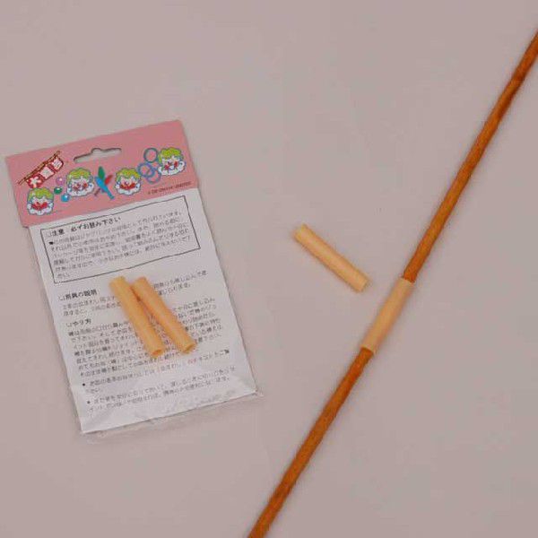 ジャグリングシリーズの「皿まわし」(J1111他)に使用するスティック(棒)をつないで長くすることができる、専用ジョイントです。これを使って「皿まわし用 スティック(ロングタイプ)」(J1111A)を2本つなげば、大迫力の本格的な「皿まわし」の演技ができます。また、スティックを半分に切っておいて、演じる時につないで使用すれば携帯にもたいへん便利になります。直径10mm・長さ54mmの肉厚のプラスチック製パイプで両側から棒を差し込むと、真ん中でぴったりフィットするようにつくられています。すでに「皿まわし」をお持ちの方はもちろん、これから「皿まわし」をご注文なさろうと思っている方も、是非「皿まわし用 スティック」と合わせてお求めになっておくことをお薦めいたします。「皿まわし」を既にマスターされた方にとっては、スティックを2倍の長さにしても、ほとんど練習しないで演じられることを保証します。(写真は用具を2セット使用しています。スティックは付いていません。)(2本セット・付属品ですので、「購入ガイド」はありません)