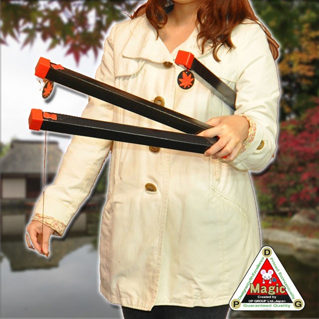 DPG 製品だからできた、究極の「チャイニーズステッキ」です。この古典トリック製品の欠点全てを解消して、このお買い得なお値段! 【演技の概略】2本のステッキに通した紐の片方を引くともう1本の紐が引き上がる、2本のステッキはつながっているとの予想に反し、完全に離してもやはり、同様に… そして、最後に3本目のステッキを取り出すと…。ご紹介する「禅/ぜん」は、まるで漆を塗ったような特殊印刷で深い黒を表現した長さ40cm以上、一辺が25mmの大型製品。両端の赤と紐の赤が印象的。紐の先端は、桜・紅葉・富士山の3種類のエンブレムを交換できます。尚、他にも「DPG チャイニーズステッキ(祝/いわい)」(K7511)・「DPG チャイニーズステッキ(聖/ひじり)」(K7515)がございます。説明書には名手フレッド・カップス師(1926-1980)の手順も解説してあります。「大感謝祭 3(DVD)」(B5503)に上口龍生師の「DPG チャイニーズステッキ」での演技、解説があります。(チャイニーズステッキ 3本セット/組立式)