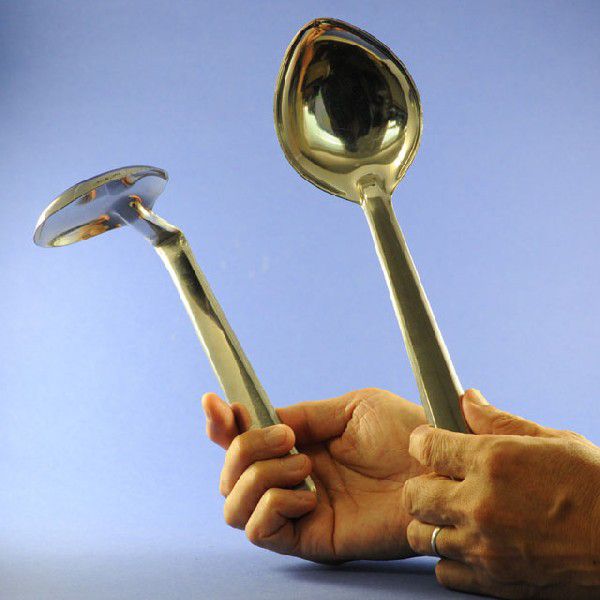 これは、ステージ向きのスプーン曲げのトリックで、まじめに超能力の演出をするのもよし、コメディータッチでユーモラスに演じるのもよいでしょう。マジシャンは長さ 30cmもある特大の金属製のスプーンを取り出し、スプーンの柄の下端を持って垂直に立てて見せます。そして、スプーンに命令すると、スプーンは自動的にゆっくりと曲がりはじめます。さらに、命令するとスプーンはどんどん曲がっていってしまいます。次に、マジシャンは元に戻るように命令します。するとスプーンは、やはり自動的にゆっくりと元に戻り始め、ついに元のまっすぐな状態に戻ってしまいます。演技の後でスプーンはお客様に調べてもらうこともできます。コメディータッチで演じるときは、例えば糸を引いて曲げている振りをしたり、催眠術をかける振りをして曲げたり伸ばしたりして見せるといった演出をすれば、お客様は大笑いとなるでしょう。<クロースアップマジック用として、レギュラーサイズの「形状記憶スプーン」(M5172)もございます>