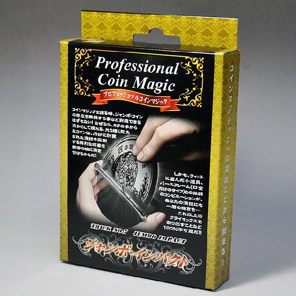 コインマジックを語る時、ジャンボコインの存在を無視する事など到底できるはずもない!なぜなら、カラの手から突如として現れる、光り輝く巨大なコインの出現は、どんな巧妙に計算された演技をも圧倒する鮮烈な印象を観客の瞼に焼き付けるからだ! しかも、ウィットに富んだ小道具、パースフレーム(口金だけのサイフ)との抜群のコンビネーションが、あなたの演技にも一層の輝きを… これ以上のクライマックスを創り出すことなど100%不可能だ!「ジャンボ インパクト」は、「フーディニーコイン(レギュラー)」(O2000)1枚に、色々なトリックコインのクライマックス等に是非活用したい「フーディニー ジャンボコイン(銀)」(O2003)、さらには色々な小物の出現・消失に、絶対欲しい「アラジンのパースフレーム」(M2400)の3つが入ったセットです。「プロフェッショナル コインマジック」のシリーズですから、色々なテクニックやフラリッシュを解説した説明書もす・ご・い!!<上口龍生師の映像解説、「レクチャーDVD(ジャンボインパクト)」(B4007)もございます>