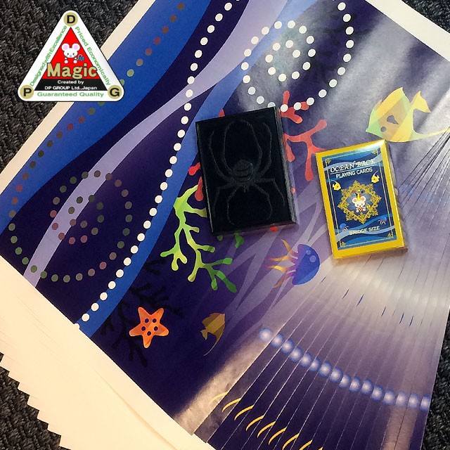 「DPG ドデカードの復活(ダブルショック)」(P7742)の手順をよりグレードアップ!(そこまでの手順は「DPG ドデカードの復活(ダブルショック)」の欄をご覧ください)さらに、お客様が特製のトリックデックから選んだカード(ハートのクイーン)を4つに折り畳み、中央に当たる部分を斜めに切り取ります。カードを広げてカードボックスの中に入れます。切り抜いた部分もボックスに入れてフタを閉め、お客様に持っていてもらいます。ここで、カードシートで<復活するカード>の手順をおこないます。そして最後に、お客様にカードボックスを開けてもらうと、ボックスの中のカードも同じように復活しているのです。「DPG ドデカードの復活(ダブルショック)」に「DPGネオジウム カードボックス」(I6233)を併用して、この完璧な手順が完成しました。他と同様ジャンボカードシートは8回分セット付きですし、特製トリックデックはハートのクイーンのカードがたくさん入っていますので、何度も演じられます。(シートは簡単なカット並びに貼り付け作業が必要です。)