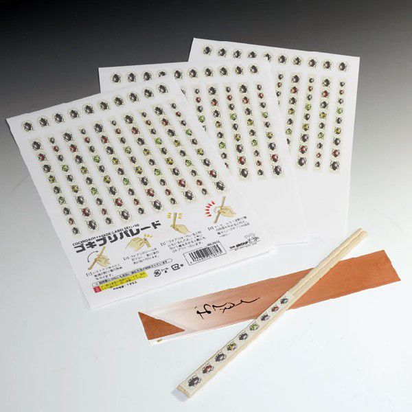 お酒の席やレストランでのお食事時に、最高にショッキングでバカうけの小品トリックです。例えば、飲みに立ち寄ったお店でテーブルにある割り箸を一膳取り、その両面をよく見せてから、一方の面の隅に1匹のゴキブリシールを貼ります。それから、箸の裏側を見せると、ナントそこにもゴキブリが1匹付いているではありませんか!そこで「ゴキブリは1匹見ると10匹はいるんだってね」と言いながら、割り箸をつまんで一振りします。すると、箸の一面に突然10匹のゴキブリが出現します。箸を握って、ひとなですると、再びゴキブリは1匹に… ところが、またまたゴキブリは10匹に増えてしまいます。今度は殺虫剤を取り出して… と、何ともお騒がせなギャグマジックです。シール30回分セットで、いたずら好きなあなたにお届けします。(写真の割り箸は付いていません)<別のデザインで「スパイダーパレード」(P9213)、「テントウ虫パレード」(P9216)があります。また同じ原理で「プレミアムメタル」シリーズの製品に「PM 宝石の飛行」(M7232/M7234)もありますし、パドルムーブのやり方は「上口龍生の「PM 宝石の飛行」解説DVD」(B4113)が参考になります。>