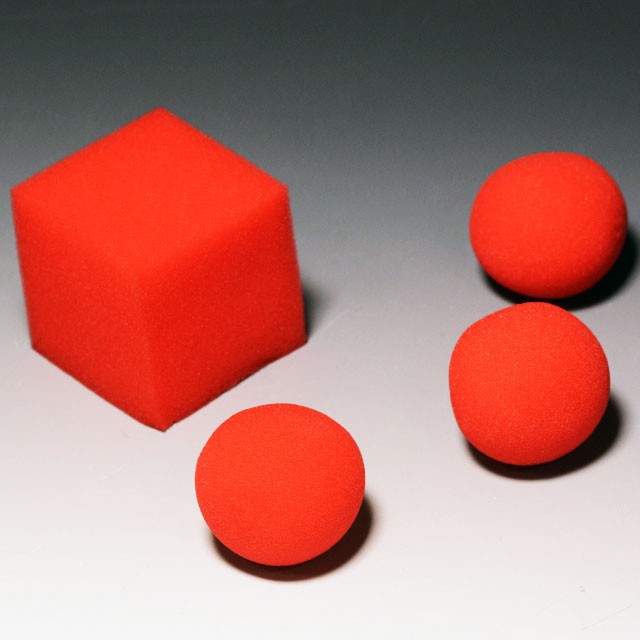 弊社初期からの人気トリック、ベストマジックシリーズ「スポンジボール」(U1121)の一回り大きなサイズの製品です。マジシャンは1個のよく調べたスポンジのボールを摘んで、ちぎる真似をすると、ボールは2個に増えてしまいます。マジシャンはそのうちの1個を握り、お客様にもう1個のボールを握らせます。すると、ボールはいつの間にかお客様の手の中に飛び移って、2個になってしまいます。自らボールを握っていたお客様の驚きは言葉では言い表せないほどのものです。そして、何度やってもボールはお客様の手の中に飛び移ってしまうのです。更に、2個のボールは3個に分裂し、ナント、最後にボールは四角に変化してしまいます。このマジック用に開発された特殊スポンジは柔らかさ・復元力とも抜群です。直径約50mmの赤いボール3個と四角(約65mm角)になるギミックボール1個が入って、詳しくわかりやすい38カットのイラスト入り説明書付きです。上級者のマジシャンにもオススメですし、初心者の方も是非チャレンジしていただきたい製品です。
