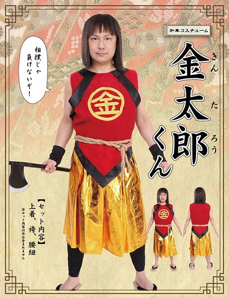 金色の袴風スカートもインパクトがあり目立ち度抜群、ワイルドな腰ひもを結んでかっこいい金太郎に変身しちゃいましょう。