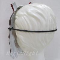 紫の太いゴムひも付きで頭囲に合うように結び目を調節し着用します。
