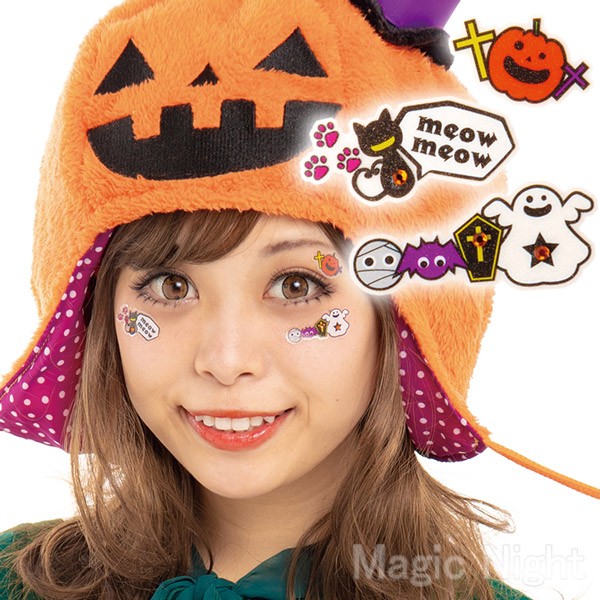 パンプキン、黒猫、おばけ等、ハロウィンキャラクター盛りだくさんの可愛いアイシャドウシールです。簡単シールメイクでハロウィンパーティを楽しんじゃおう♪