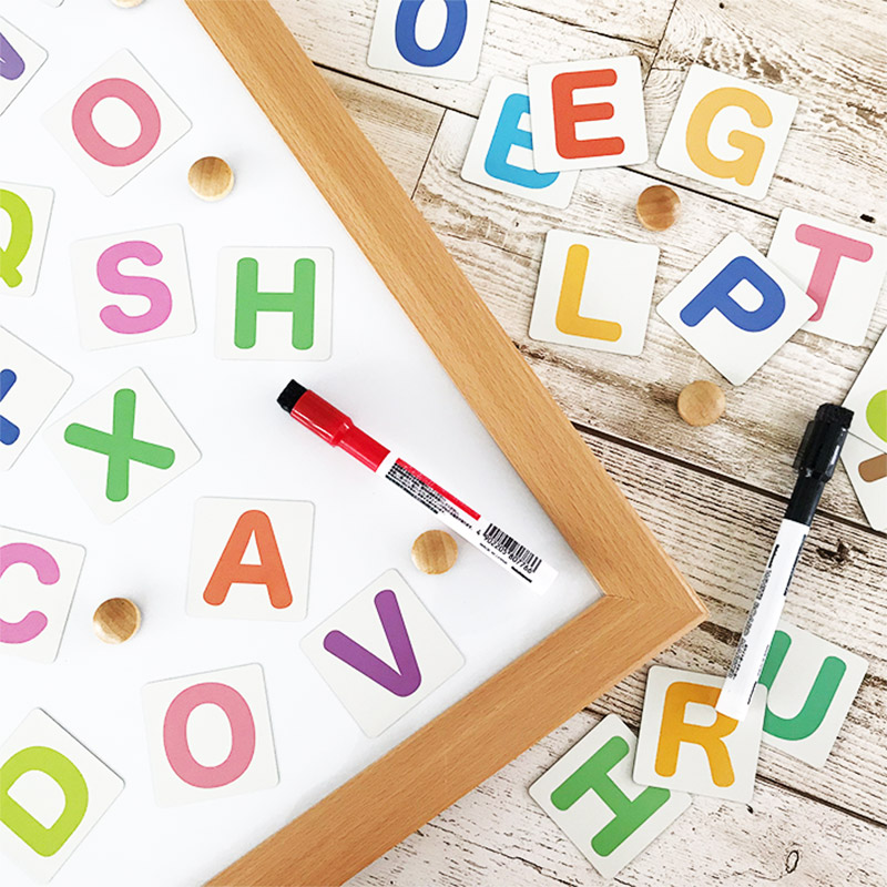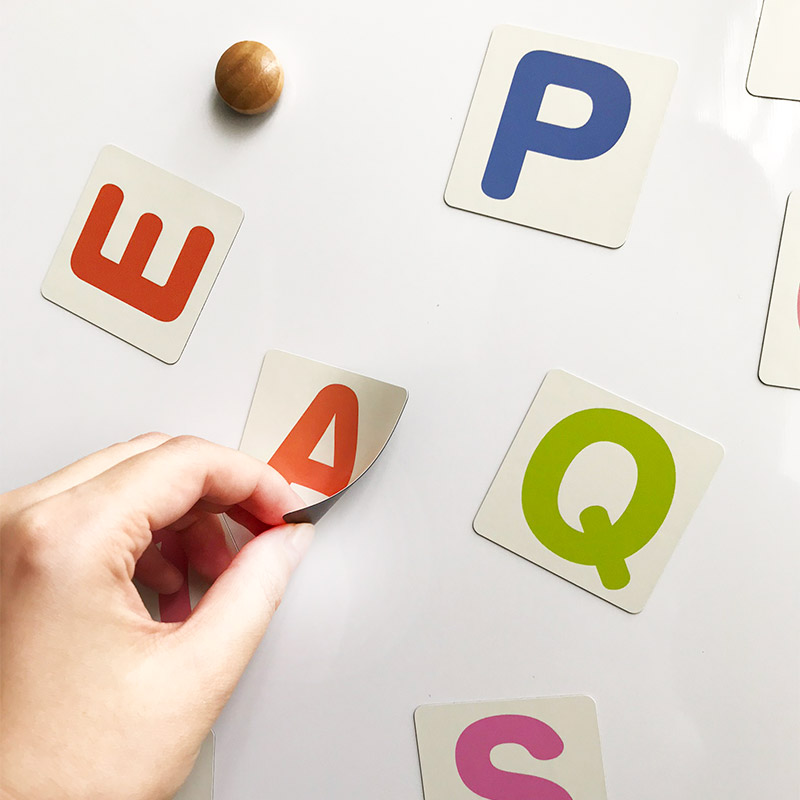 マグネットシートでできた、かわいい「アルファベットカード」!一枚ずつ切り離せるから、アルファベットの並びを勉強したり、いろんな言葉を作ったりと遊びながらお勉強できます。