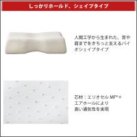 中央のくぼみに後頭部から首、肩にかけてをのせると、芯材の<エリオセルMF>がやさしくソフトにフィット、しっかりとしたサポートを得ることができますし、横寝の際には両サイドの盛り上り部分に頬をのせることで首が安定します。<エリオセルMF>は通気性に非常に優れ、また1年を通じて温度によって硬さが変化しないので、1年中ムレずに快適にお休みいただくことができます。