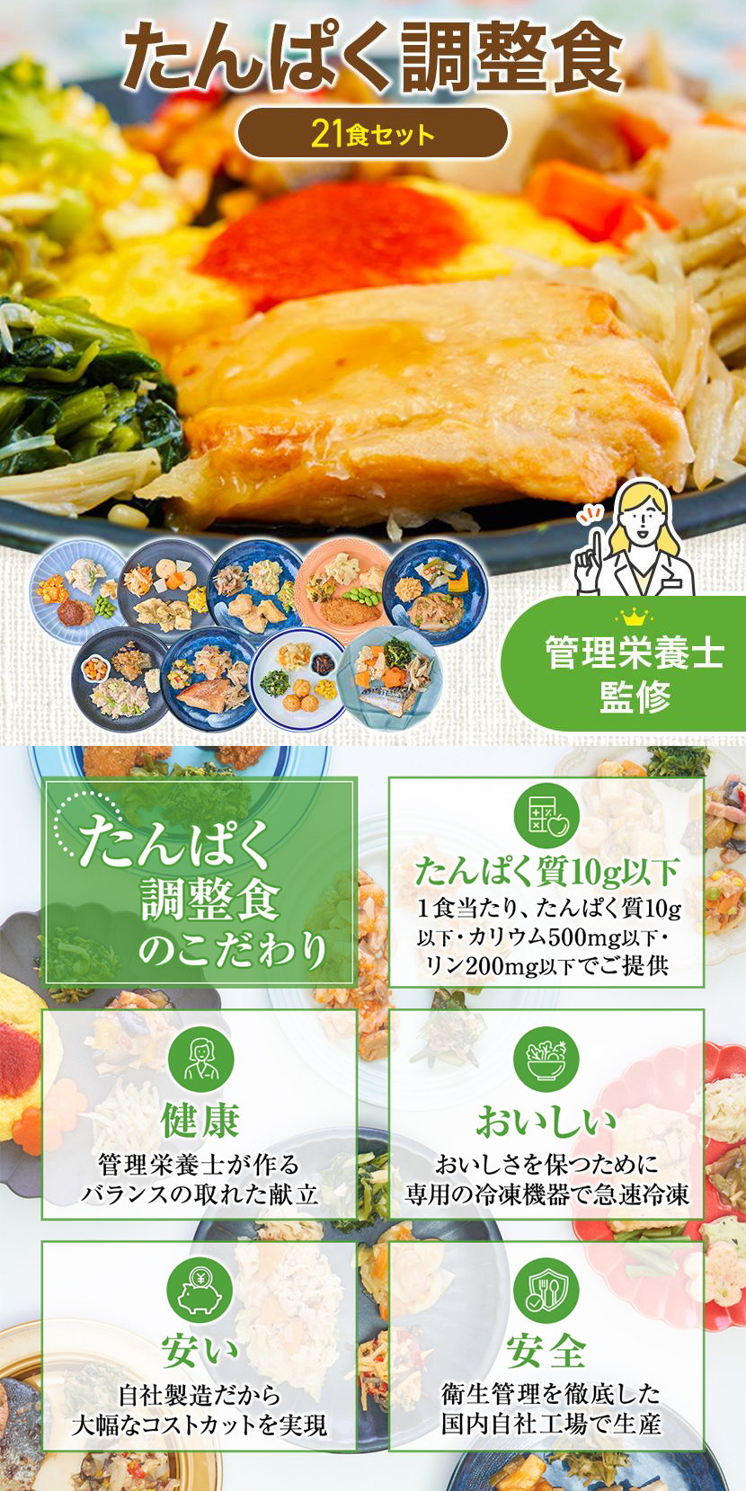 たんぱく調整食 21食 冷凍弁当 お試し 安い おかずのみ まごころケア食 宅配弁当 冷凍食品 冷凍惣菜 宅配 カロリー 糖質 塩分 健康 高齢者