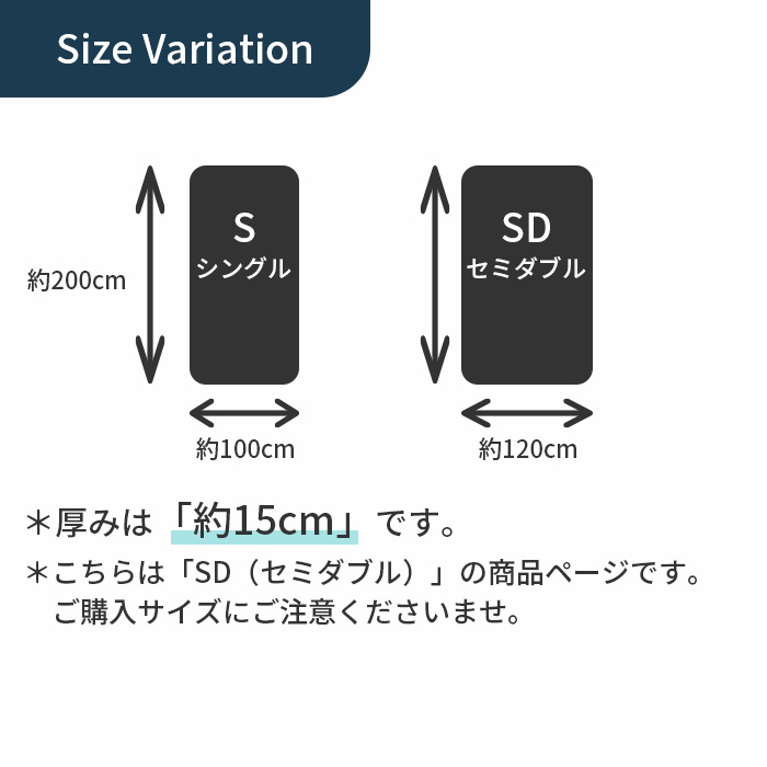 | サイズ | 約120×200cm(セミダブル) 厚み:約15cm |