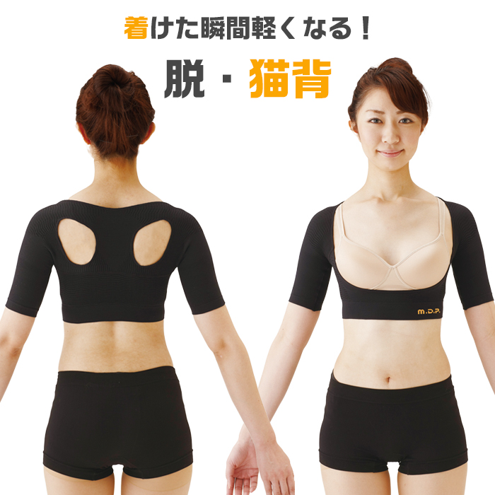 着るだけで背筋ピーン!たすき掛けで肩甲骨を引き寄せ自然に猫背がピンと伸びた正しい姿勢へ導き、肩甲骨奥の僧帽筋の緊張がほぐれて肩が楽に!