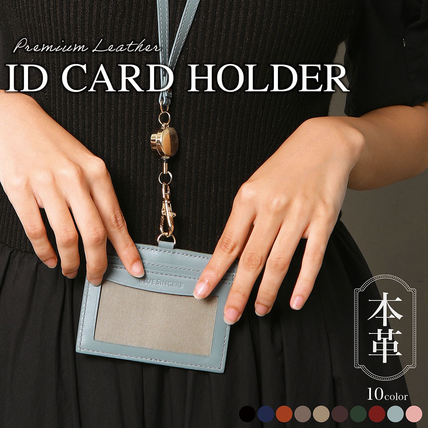 IDカードホルダー 社員証ケース 名札ケース 本革 レディース ネームホルダー 首掛け 伸縮リール付き パスケース カード4枚収納 / amicitia アミキティア ID1