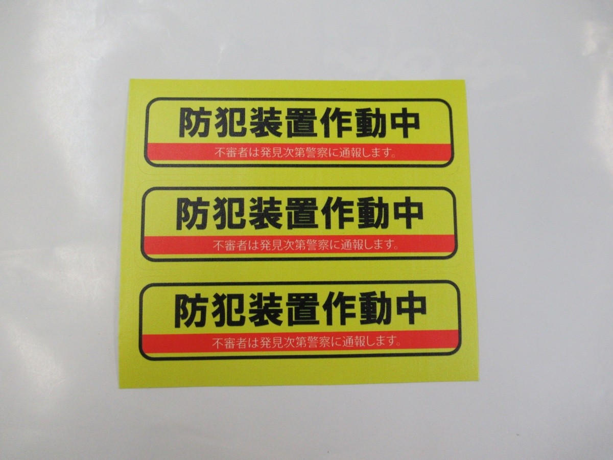『防犯装置作動中』 横型 シール・ステッカー 3枚(1セット)です。
