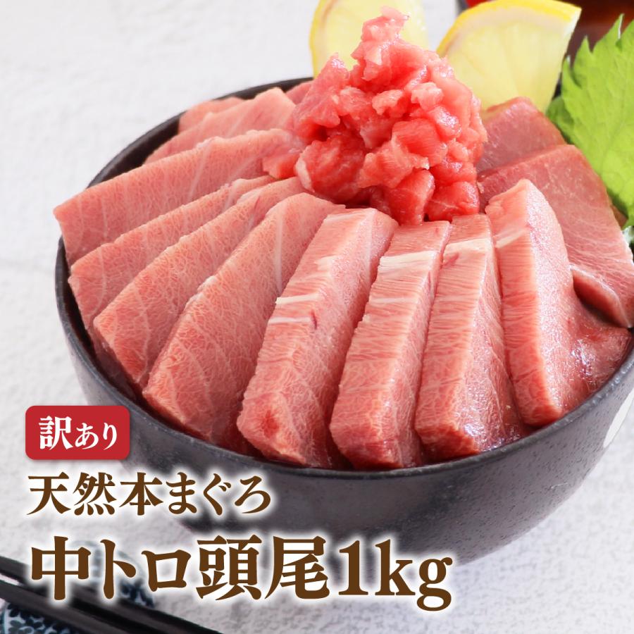 マグロ 訳あり 刺身 中トロ まぐろ 鮪 本鮪 天然本マグロ 中トロ頭尾1kg 頭尾部位を使用しているため筋が強め 80568