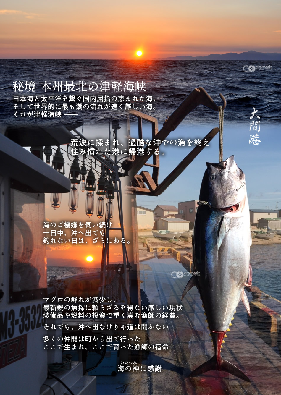 本州最北端の厳しい風雪の町、マグロの町から津軽海峡の潮風と共にお楽しみ頂ければ幸いです。