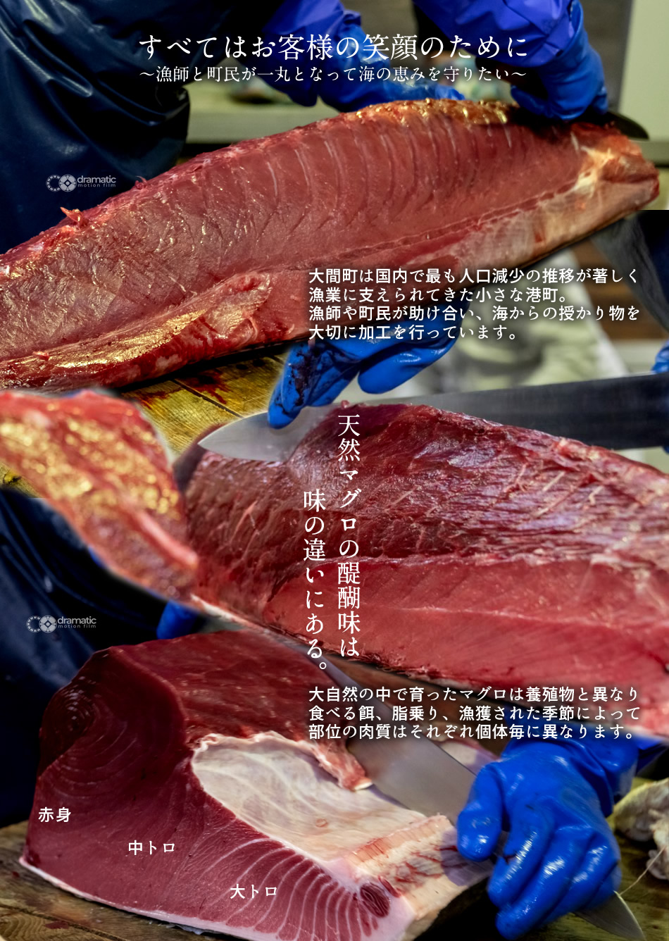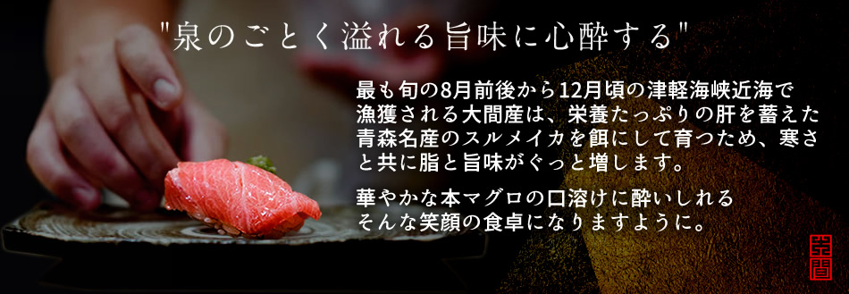 大間のまぐろは、均一な給餌により育った養殖物とは異なり、自然の海で育った天然の魚のため、時期や個体、部位毎にそれぞれ味が異なります。