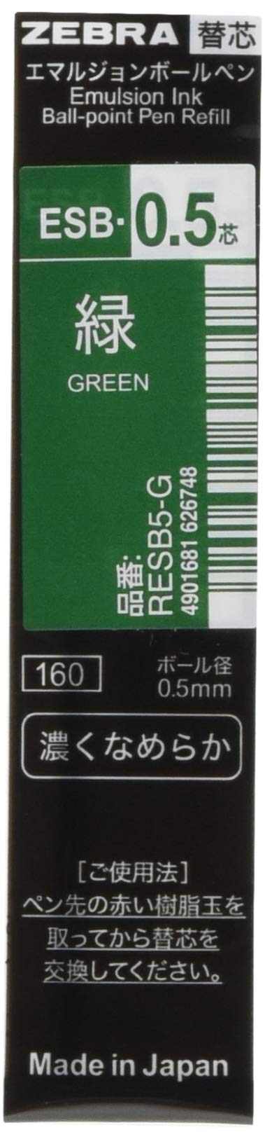 ゼブラ 油性ボールペン替芯 シャーボ ESB-0.5芯 緑 10本 B-RESB5-G