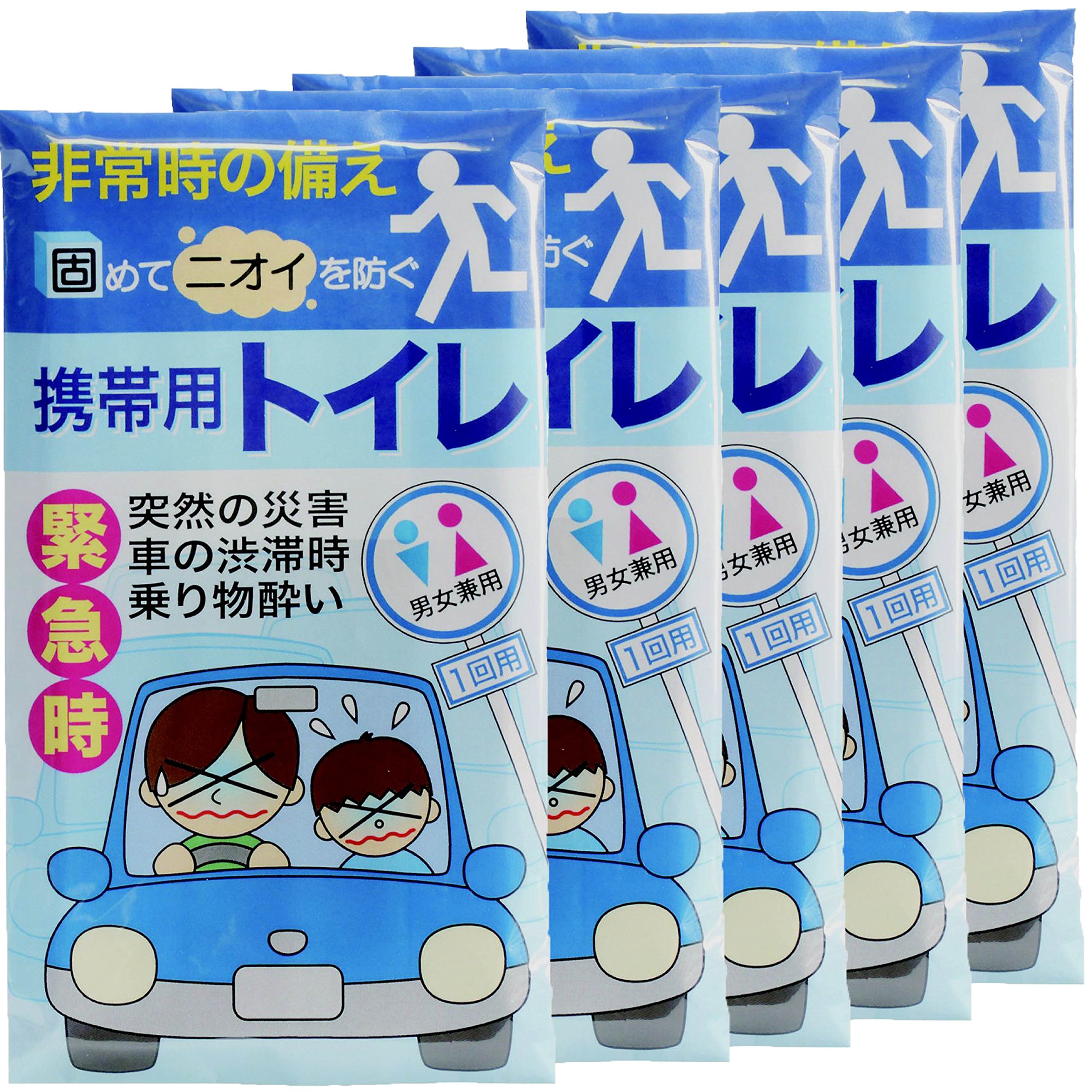 高分子吸収樹脂で固める 携帯トイレ 持ち帰り袋付き 500cc 5P6485