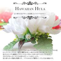 ハワイアンフラやインテリア、アロマなどで人気のアイランドチューブローズの花のヘアクリップです。美しい純白の花びらで仕上げました。花びらやシダの細部のデザインにもこだわった仕上がりとなっています。大きすぎないサイズですが花のボリュームはたっぷり。花の柔らかい質感も特徴です。フラのみならず雑貨としても人気の商品です。