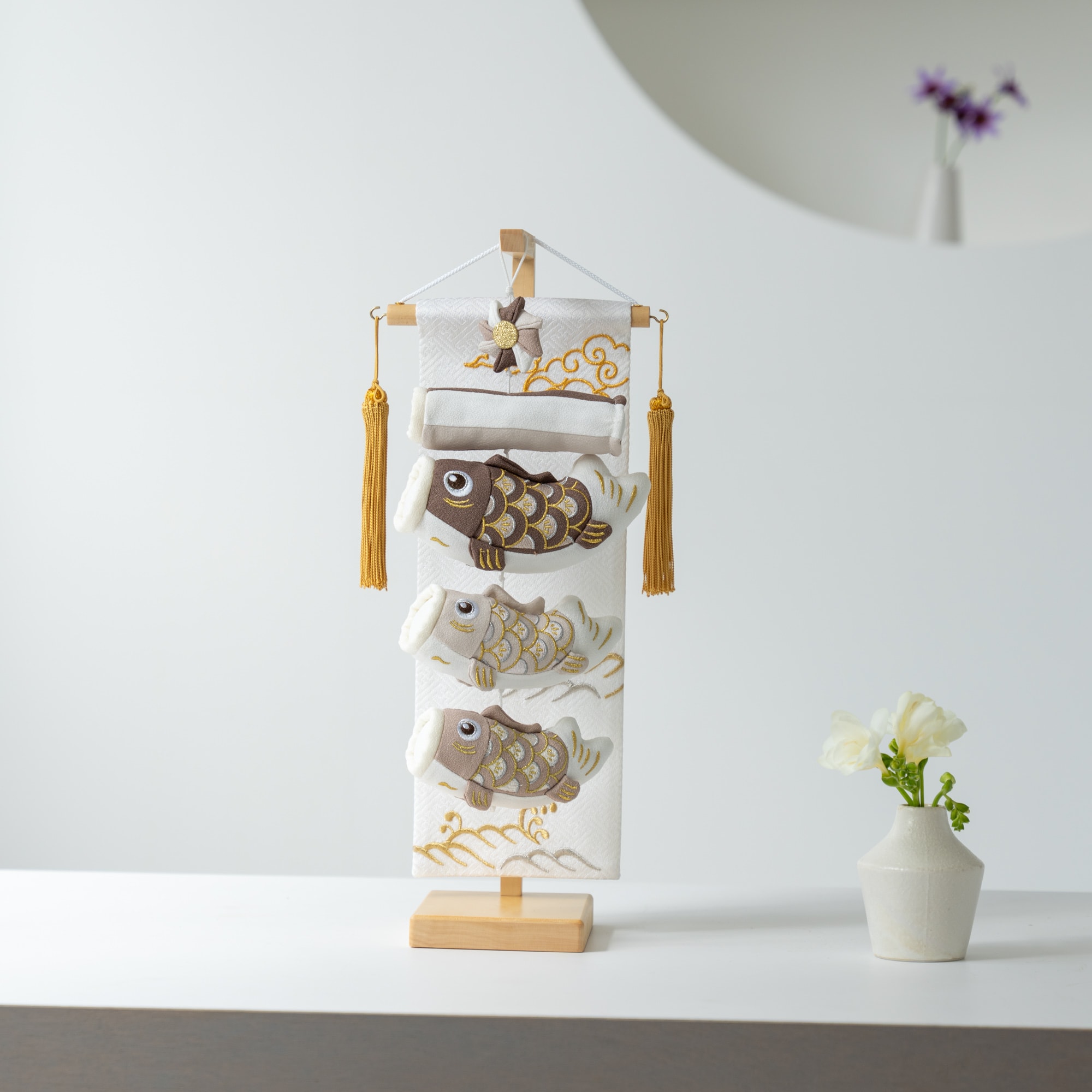 こいのぼり 室内 鯉のぼり コンパクト おしゃれ モダン 木 人気 インテリア 木製 高級 夢鯉 モカ 白 41cm 日本製
