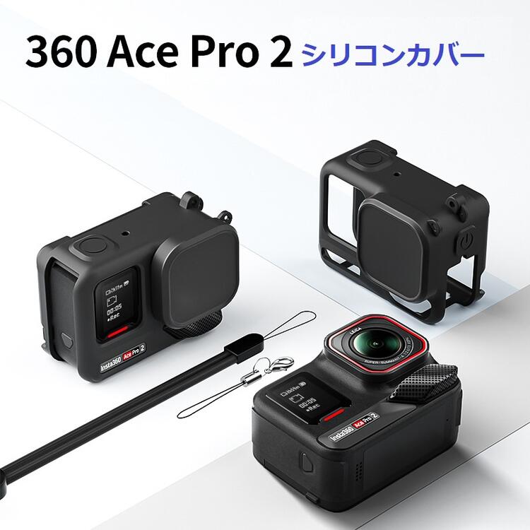 商品名 Insta360 Ace Pro2対応機種 シリコン 保護カバー 保護ケース カメラレンズ保護カバー付 カメラレンズキャップ カバー ソフトカバー カメラキャップ ストラップ付 ブラック