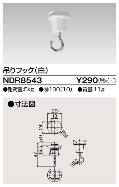 東芝ライテック NDR8543 ライティングレール VI形用 吊りフック 白色