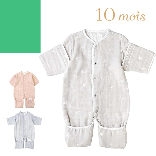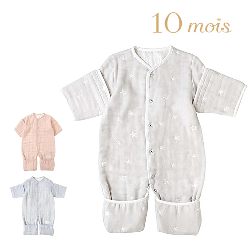 ママやパパにしっかり寄り添えるものづくりを目指すブランド10mois(ディモワ)の6重ガーゼスリーパー。日本製6重ガーゼを使用した繊細で柔らか、肌触りの良い仕上がりが特徴。赤ちゃんのお肌に合う様に低刺激で安心。赤ちゃんの湯冷めや寝冷え対策におすすめのアイテム。やさしい色合で、インテリアとも馴染みやすいカラーなのでプレゼントとしても人気。同ブランドのたまごマットおくるみは夜泣き対策におすすめ。