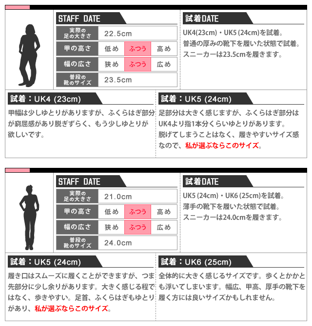 | サイズ | 筒高さ | 履き口 (外周) | 足首 (外周) | 甲幅 | ヒール |