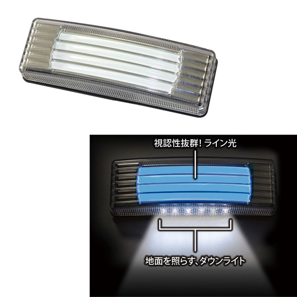 視認性抜群のライン光と地面を照らすダウンライトを併せ持つマーカーランプ。24V用。1個入り。