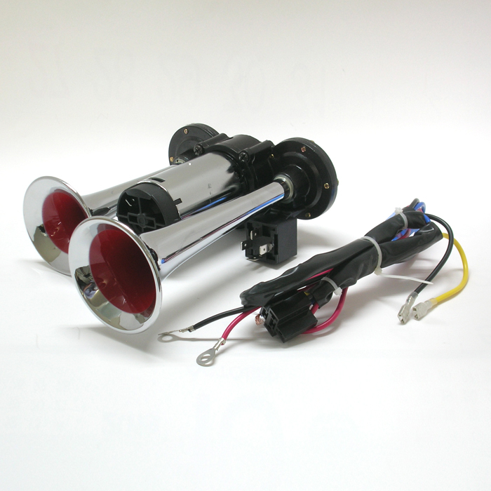 電子ホーンのように簡単に取り付けができるエアー式ヤンキーホーン。 エアコンプレッサー一体型ヤンキーホーンなので、エアータンクやコンプレッサー等は別途必要ありません。ステンレス製クロミウム表面被覆により、クリアなサウンドと低音と高音によるハーモニーを奏でます。