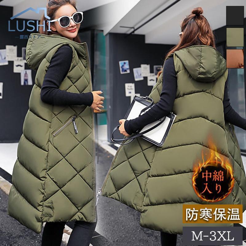 中綿 レディース ロング丈 フード付き ノースリーブ ダウン 無地 ジレ 前開き カジュアル ゆったり 通勤通学 おしゃれ 可愛い シンプル 大きいサイズ 体型カバー 防寒 防風 保温 暖かい プレゼント スリム 着痩せ キレイめ 旅行 ファション フェミニン アウトドア お出かけ コーデ トレンド 外出 エレガント イベント 秋冬 冬服 羽織り 厚手 大人