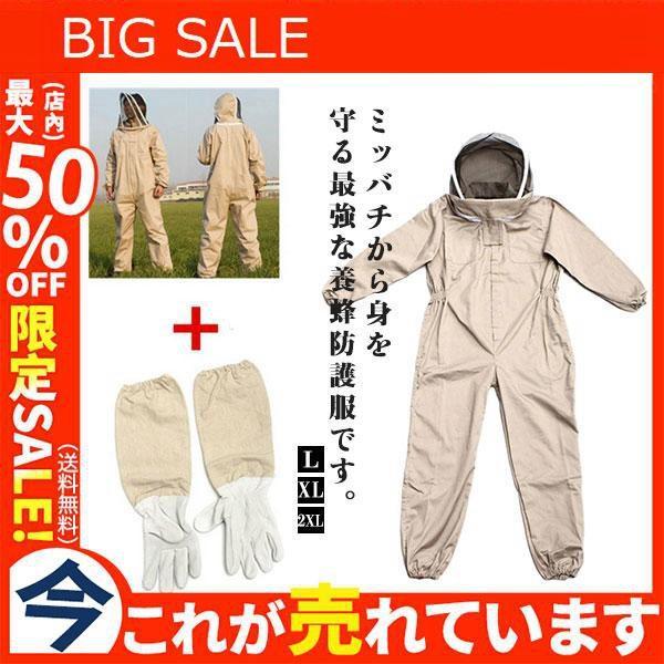 【値下げ】養蜂用 防護服 蜂防護服 保護服 フェイスネット付き 手袋付き ハチ防護服 上下服 害虫駆除 一体式 刺され防止 ガーデニング 男女兼用 快適