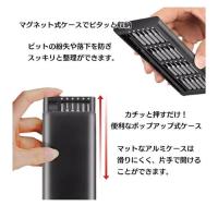 【快適に作業できる】それぞれのビットごとに収納位置があり、マグネットでピタッと固定されているので、バラバラしにくくなっています。ドライバーハンドルの上部分は360°回転するので、長時間作業しても手が痛くなりません。