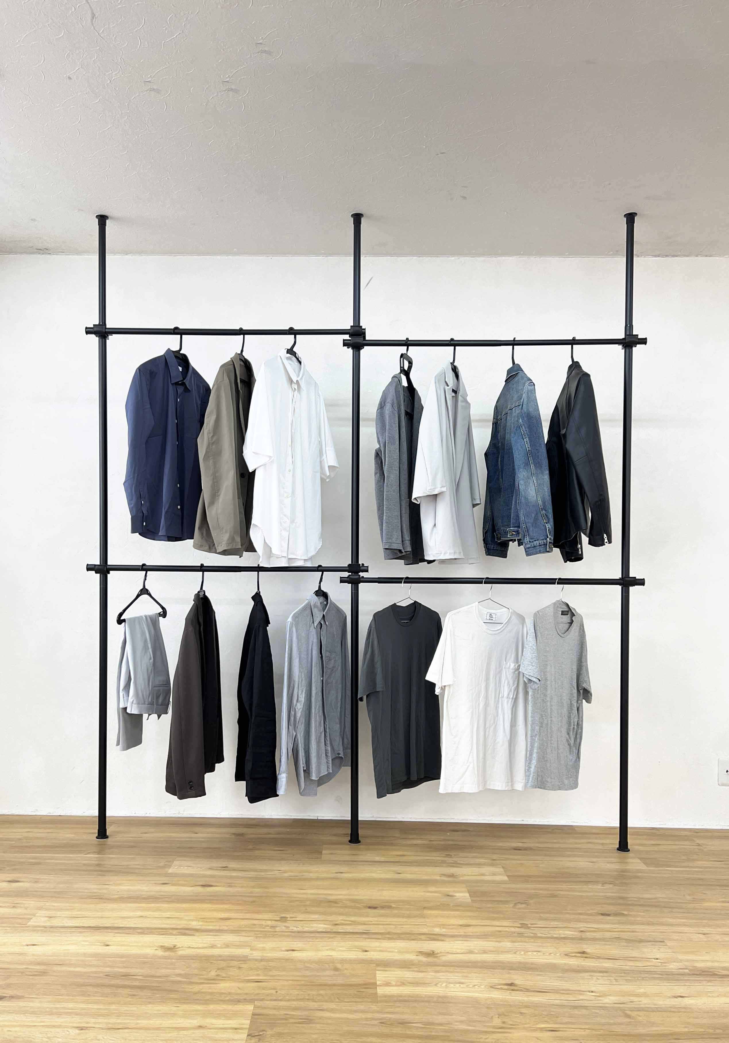 突っ張りラック、ポールハンガー、ワードローブ、突っ張り棒、洗濯物干し、布団干し、衣類収納、ランドリー収納 など