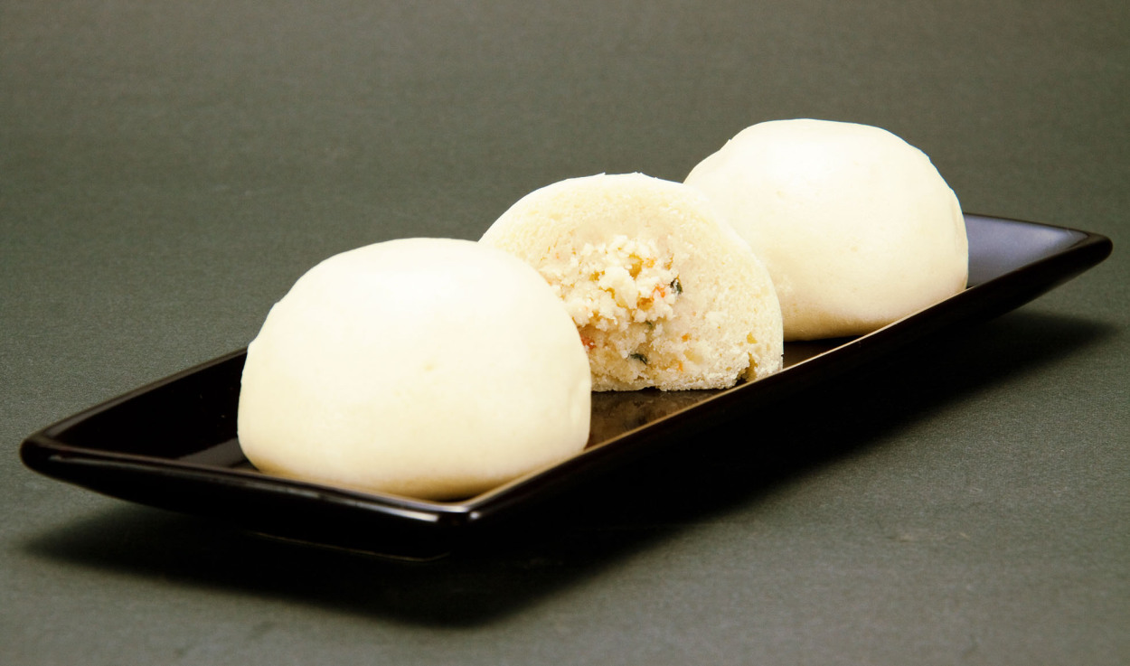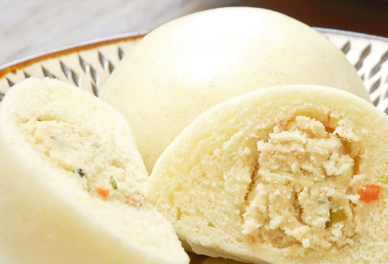 あっさりとした中華風のしょうゆべースのおから餡が入った『とうふまんじゅう』。