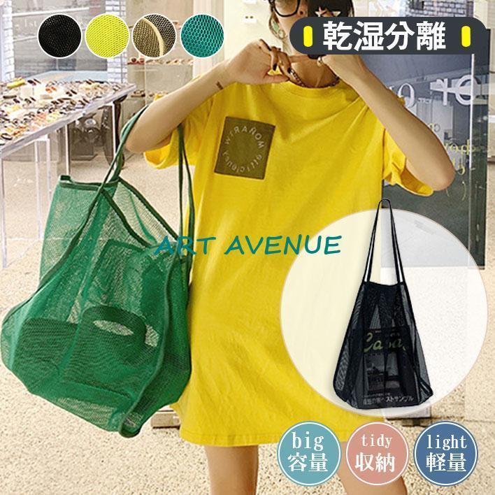 トートバッグ ビーチバッグ メッシュ バッグ 男性用 女性用 シンプル 無地 かばん お買い物 大容量 ビッグ 大きい 海水浴 プール