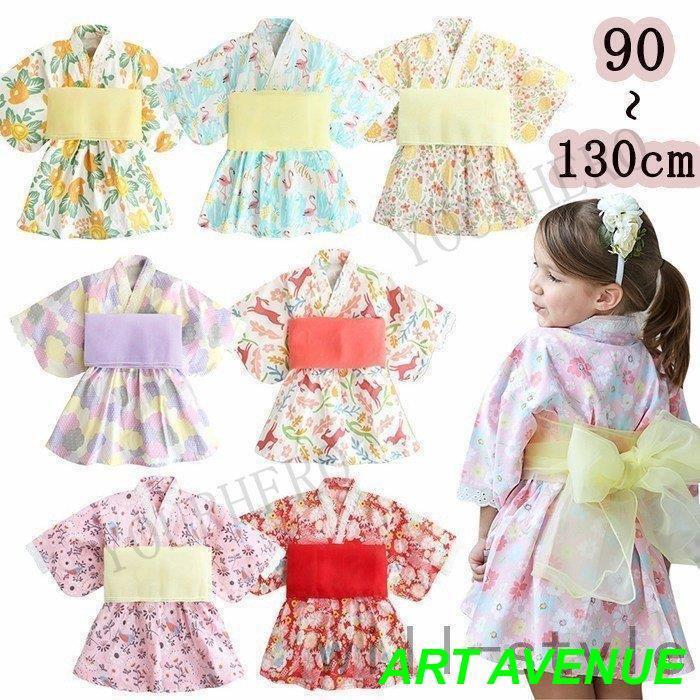 浴衣 子供 女の子 ワンピース 帯 女の子 かわいい レトロ キッズ 浴衣 子ども 浴衣ドレス 兵児帯付 甚平ベビー服 長袖 チュニック子供 花柄