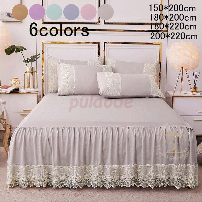 ベッドスカート レース 姫系 柔らかい ベッド用品 寝具 可愛い 枕カバー シーツカバー ベッドカバー 無地 北欧風 四季通用 ベッドスプレッド 敷きパッド 北欧風