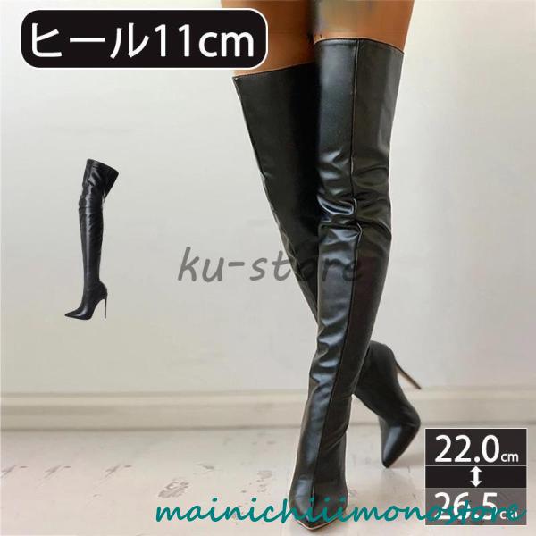 レディース ニーハイブーツ 大きいサイズ ストレッチ ブーツ ハイヒール スムース ロングブーツ ピンヒール ポインテッドトゥ 通勤通学 ストレッチブーツ 長靴
