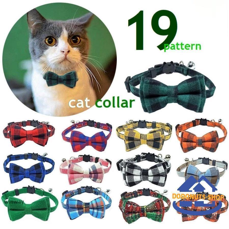 猫用首輪 ねこ ペット用品 チェック柄 カラー チョーカー セーフティーバックル 蝶ネクタイ リボン 鈴付き おしゃれ かわいい おめかし キュート