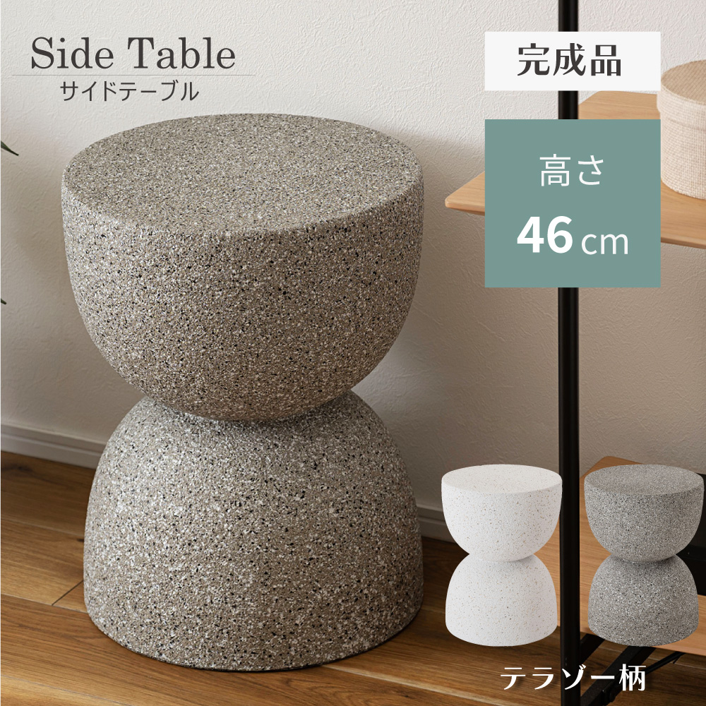 サイドテーブル テラゾー おしゃれ ざらざら 石目調 大理石調 軽い 軽量 花台 プランタースタンド ナイトテーブル ベッドサイドテーブル ソファサイドテーブル 完成品 スリム コンパクト