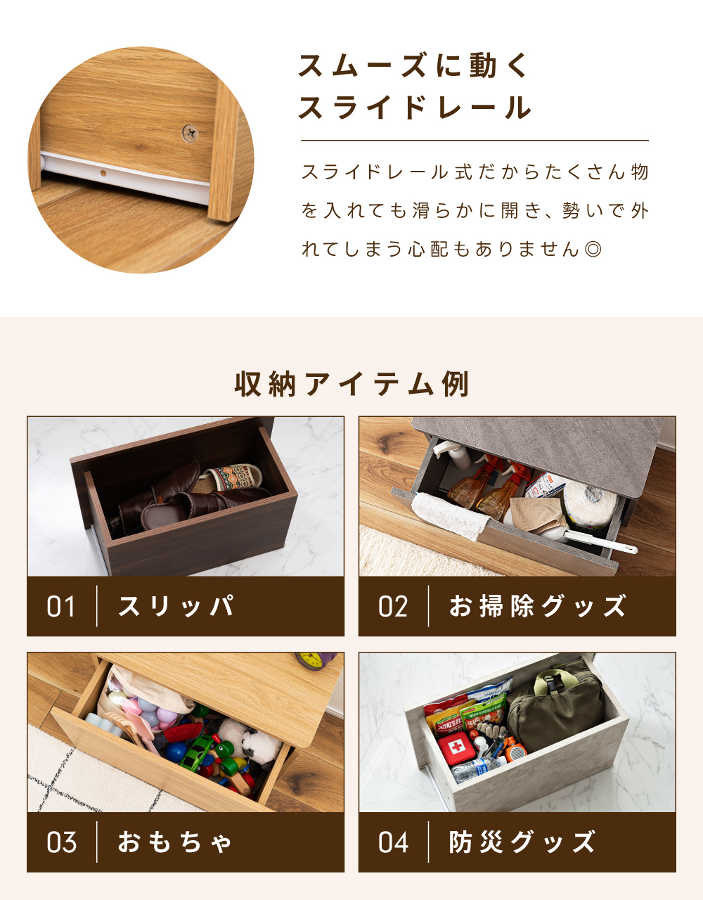 スツール 玄関 収納 玄関スツール 収納スツール おしゃれ 北欧 ナチュラル モダン シンプル 木目 ブラウン グレー スリッパ 引き出し スリット 取っ手なし 防災