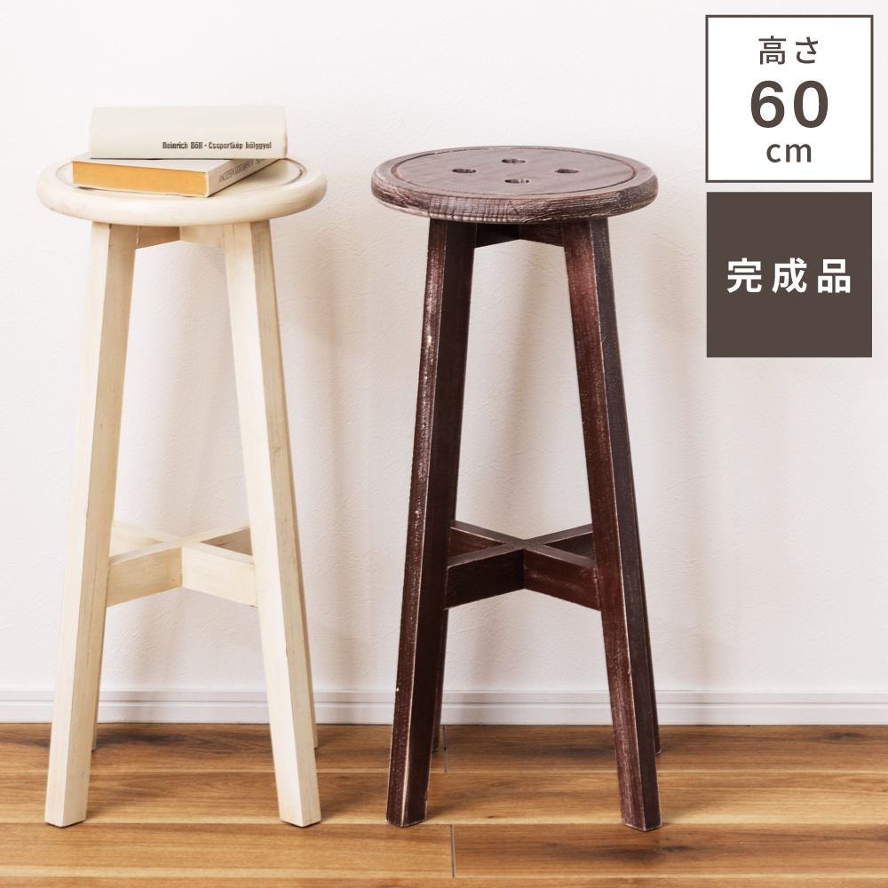 ハイスツール スツール カウンタースツール 椅子 いす 木製 腰掛け レトロ おしゃれ インテリア ボタン カントリー かわいい ブラウン グリーン グレー アイボリー